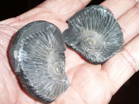 Ammonitfossiler fra elvegrusen